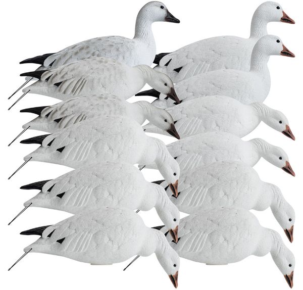 - Includes: 3 Actives ( 2 Adult Snows, 1 Juvie Snow), 5 Straight Neck Feeders (5 Adult Snows), 4 Right Turn Feeders (2 Adults Snows, 2 Juvie Snows), 12-20″ TruMotion 2.0™ Field Stakes
